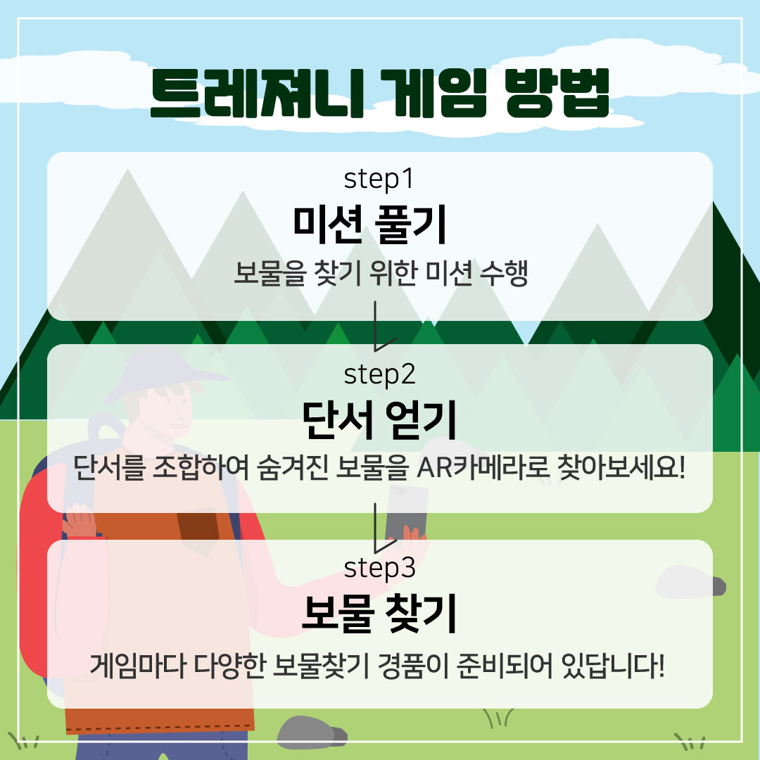 미션을 풀고 > 단서를 얻어서 > AR 보물을 찾으면