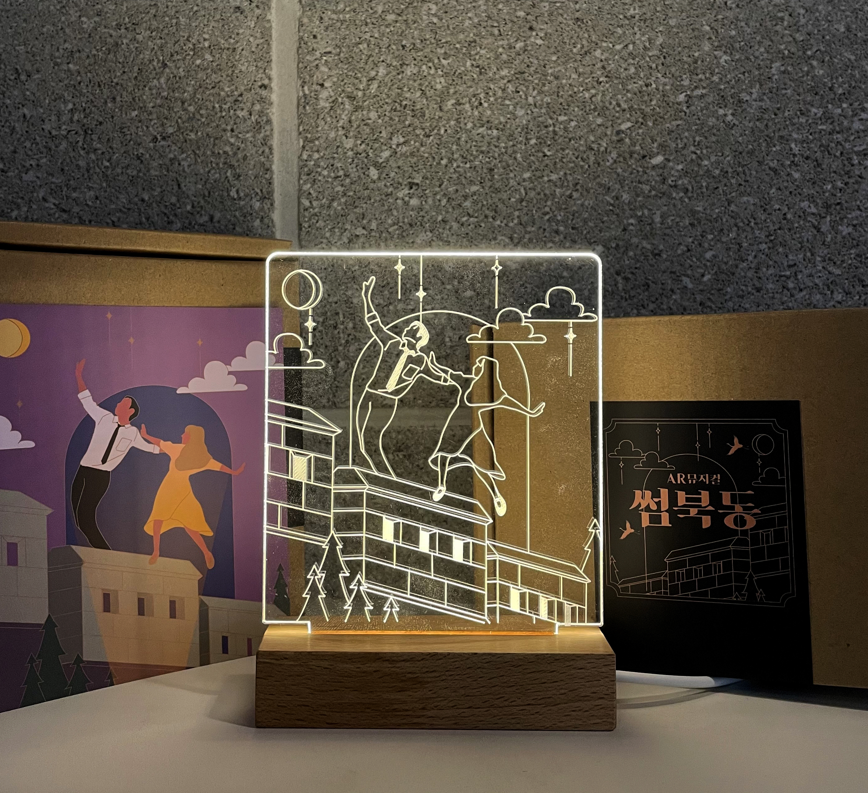 라라랜들을 연상케하는 뮤지컬 주인공들이 그려진 무드등으로 기분 좋은 꿈자리로