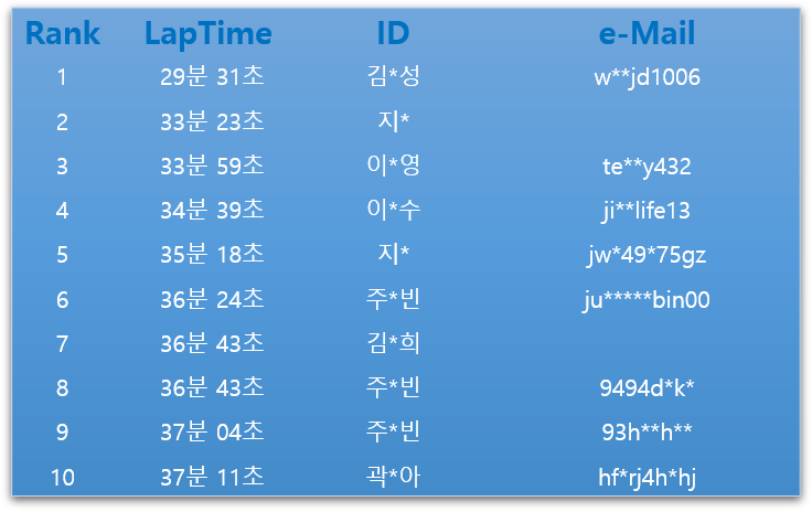 빠르게 완주 랭킹 Top 10
